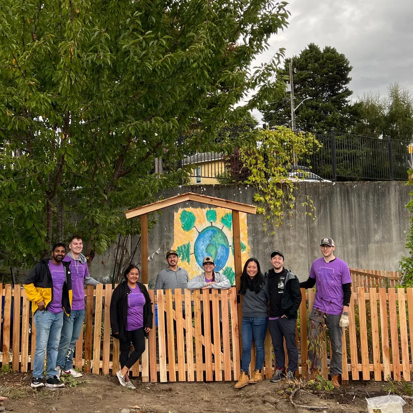 Nearly two dozen MKA employees and their family members outfitted in gloves, rain gear, and custom-made purple T-shirts visited Thurgood Marshall Elementary School in Seattle’s Judkins Park neighborhood on September 23 to participate in this year’s companywide Community Service Day.