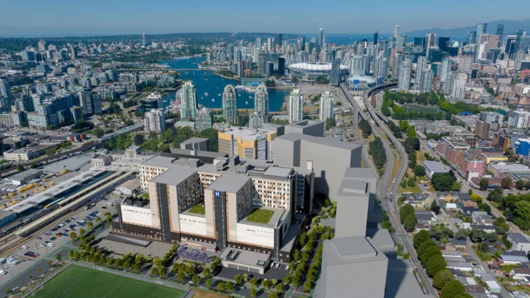 Located in downtown's False Creek Flats neighborhood, this 12-story facility offers 548 beds and an underground structure with loading docks and parking for 1,300 vehicles.