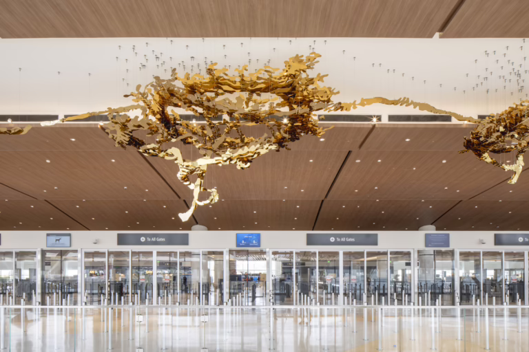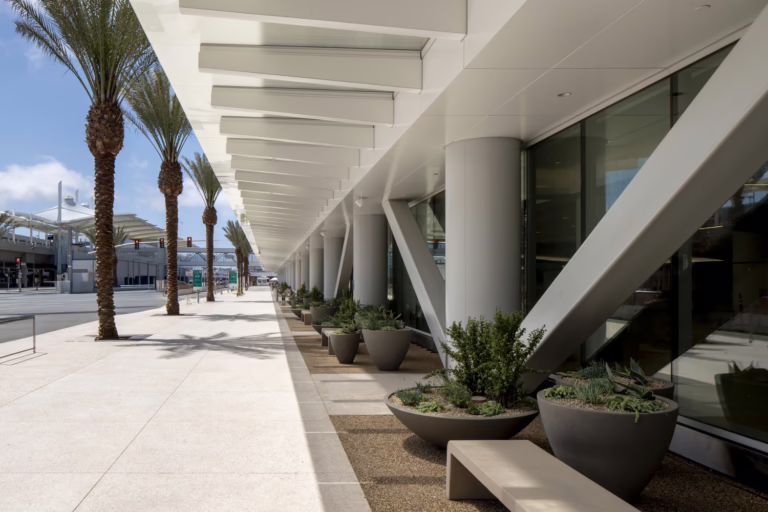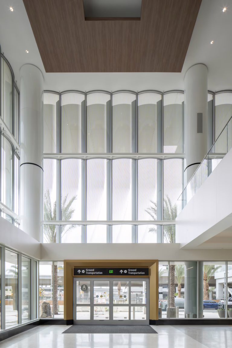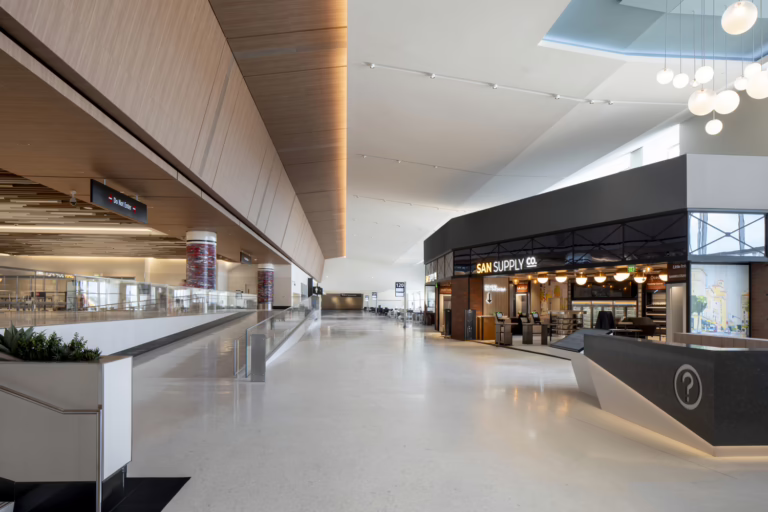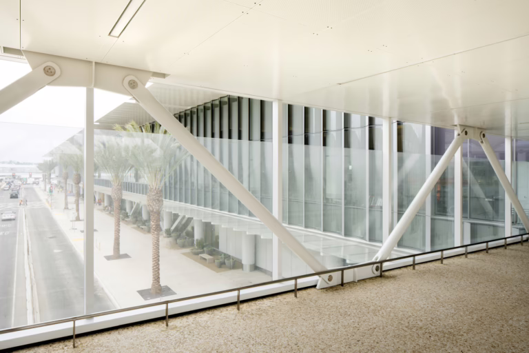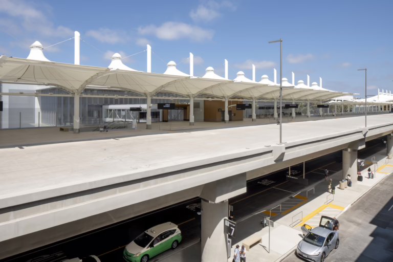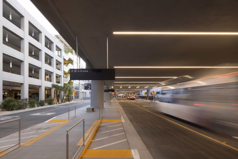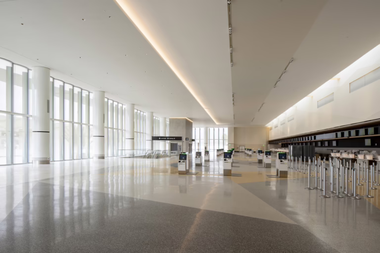 Designed to support increased passenger demand, this project replaced an existing and outdated 19-gate terminal with a three-story facility offering 30 gates with generous seating areas, a large marketplace of diverse food and retail options, an outdoor dining terrace, and an enhanced security checkpoint.  Outside the terminal, 1.2 miles of new airport access roadways facilitate traffic circulation, while a pair of pedestrian bridges connect travelers to a new parking plaza serving 5,500 vehicles and ground transportation operations.