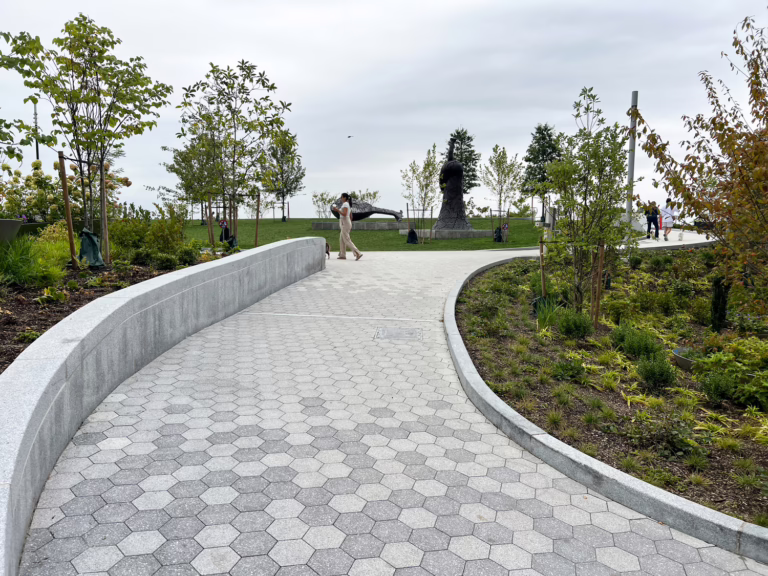The design integrates new flood-resist infrastructure (flood walls and deployable flood gates) sited into a world-class urban park. MKA’s design integration role involves working with the team to achieve an engineered system that will protect the park and public space from a 100-year event in the year 2050 and also serves as a collection of beautiful public space elements. The civil design utilized a landscape-based stormwater management approach that cleansed the “wet side” runoff before returning it to the Hudson River as well as a water reuse system that leveraged on-site water resources to meet the project’s non-potable water demands. The project also achieved WEDG certification for its “incredible achievement in resilience and exceptional public access space” that met and exceeded the rigorous technical standards developed by Waterfront Alliance.