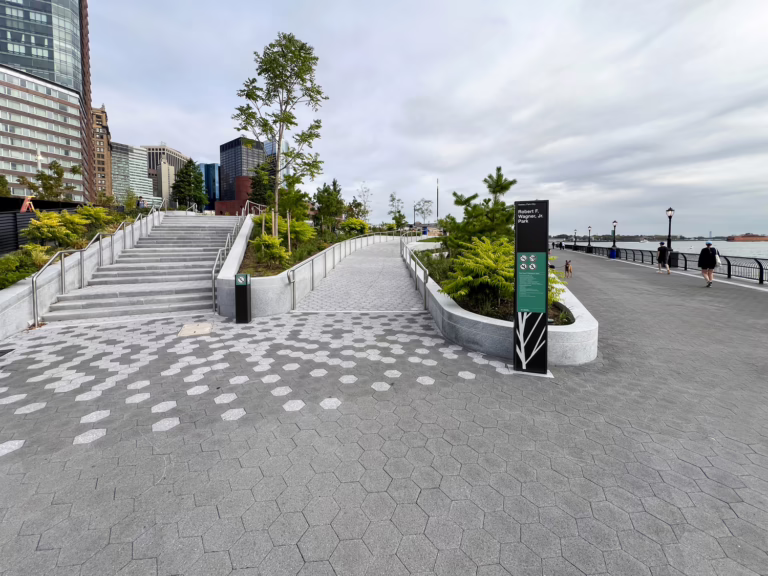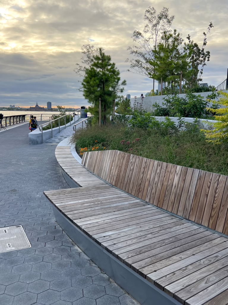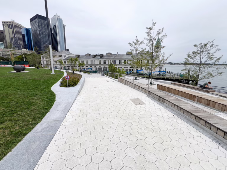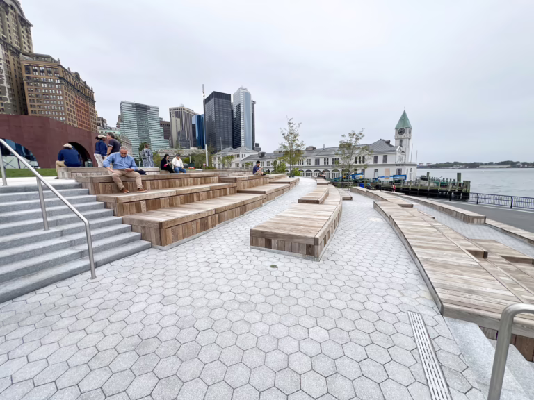 The civil site design for this popular waterfront site in Lower Manhattan includes an integrated flood-barrier system to bolster resilience and reduce flooding from tidal inundation, storm surge, and sea-level rise.