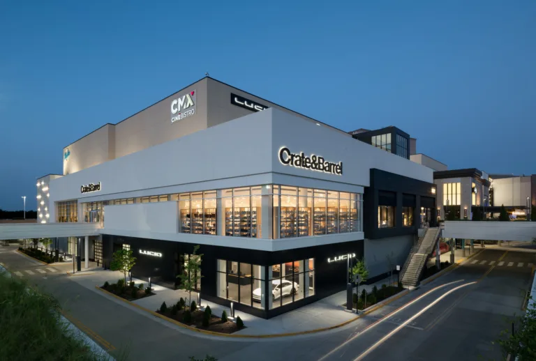 For the redevelopment of this former Macy’s department store, originally built in the 1980s, MKA introduced design solutions for the three-level steel structure that raised the roof to accommodate a new cinema tenant on the upper level.